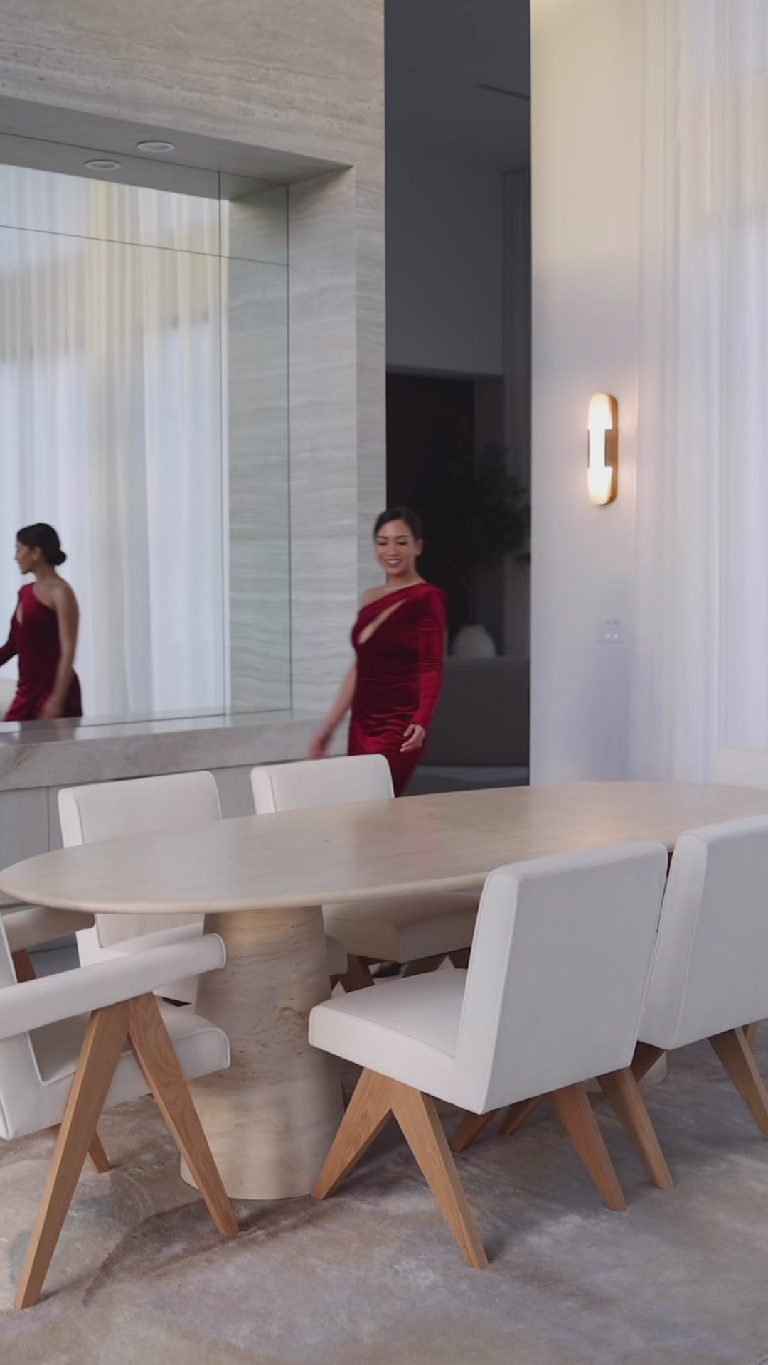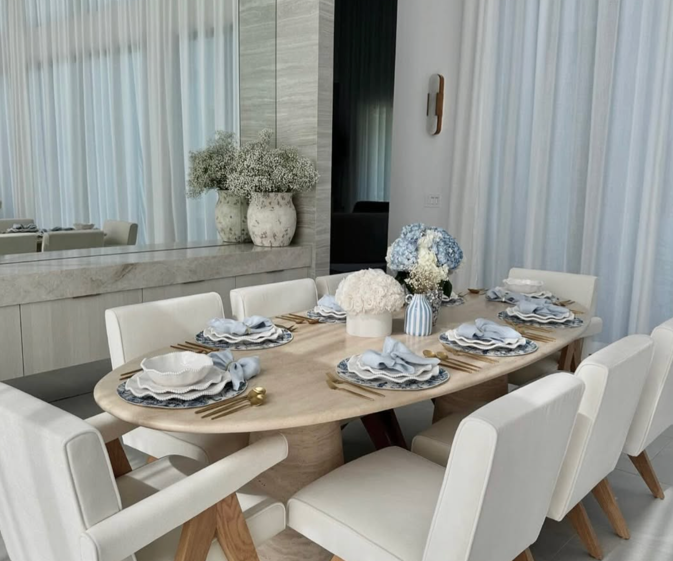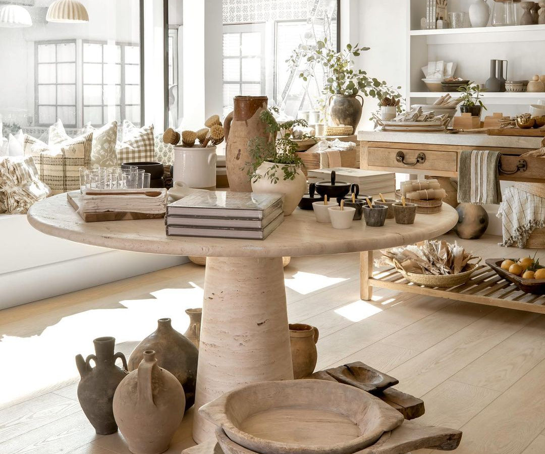 Double Oval Palermo Dining Table in Travertine | 96" Size