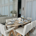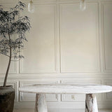 The DOUBLE OVAL PALERMO Dining Table balances sculptural form with understated elegance. Designed in Southern California and handcrafted in Italy, this pieces is a study in proportion and material integrity. Its double pedestal base supports an elongated oval top, creating a sense of harmony and architectural rhythm within the space.