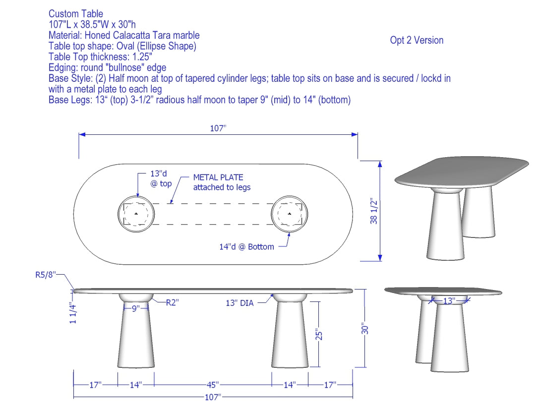 Table Top: Ellipse Oval Shape (see attached drawing)