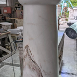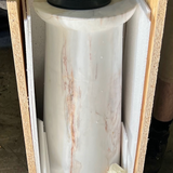 Base: (2) Solid-Stone Tapered Cylindrical Bases w/ added half-moon detailing