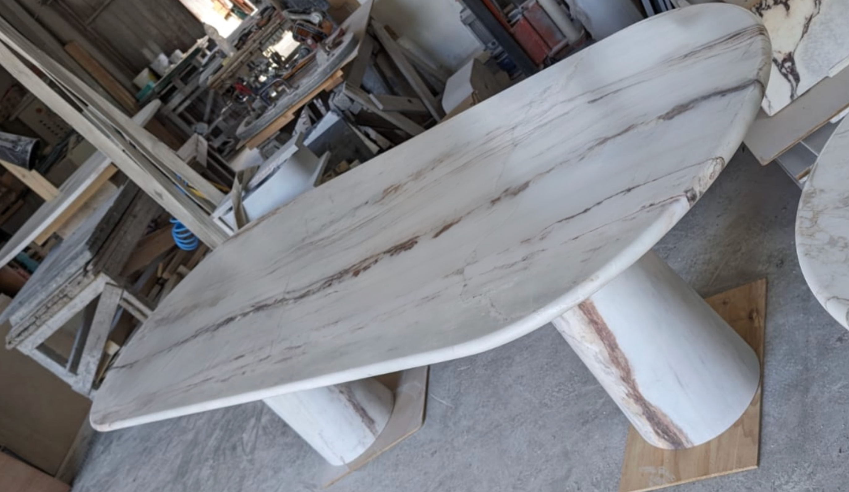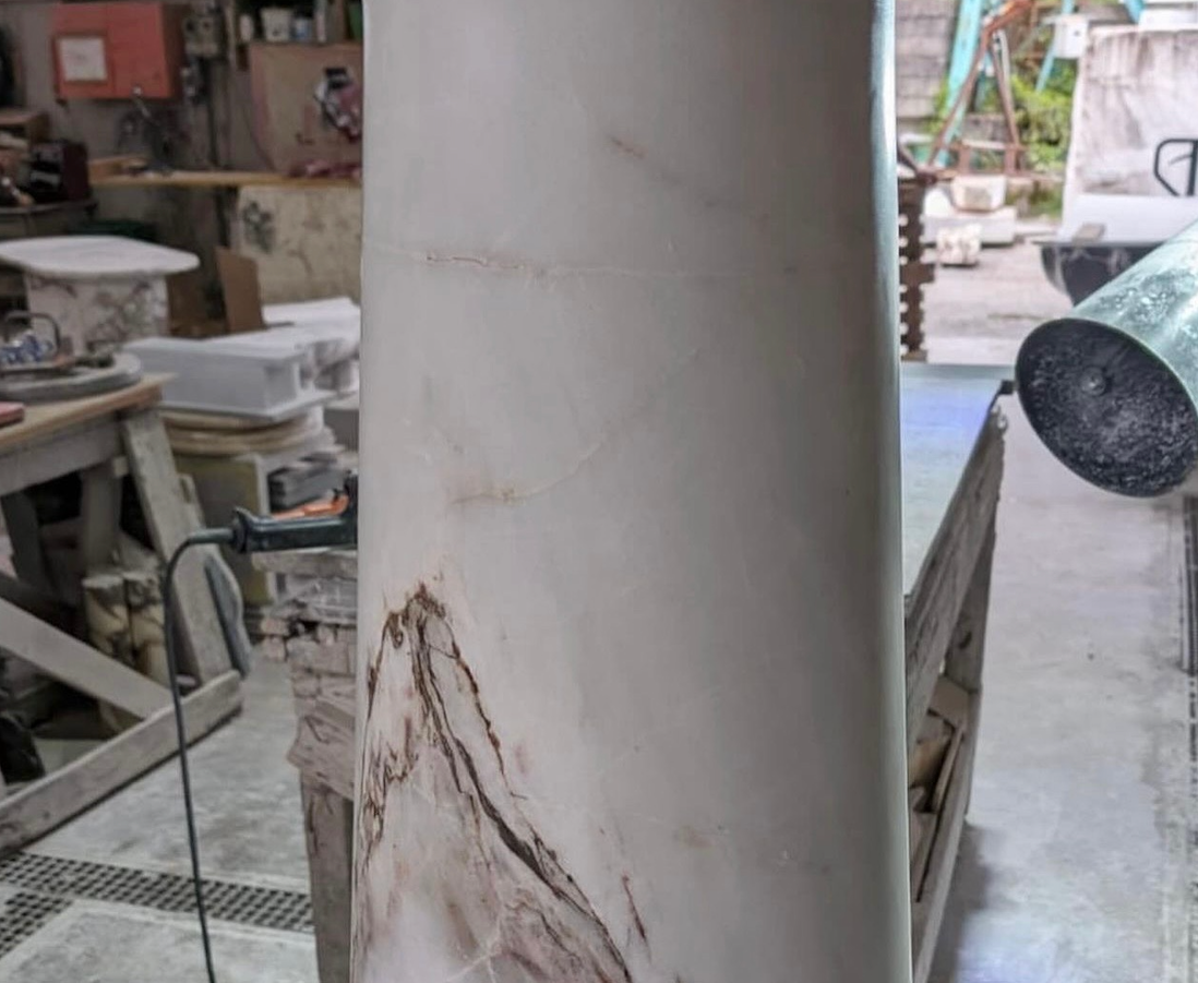 All of our stone is sourced from nature and, as such, each piece carries its own unique variations in color, veining, and texture. These distinctions are inherent to natural materials and evolve as quarries are mined deeper into the mountain. For custom works carved from solid blocks—such as our furnishings, sinks, decor, and sculptural forms—the inner character of the stone is revealed through the hands of our artisans as they cut, chisel, and polish each surface into form. As each stone reveals its character through the fabrication process, these nuances cannot be fully anticipated in advance.