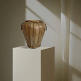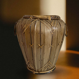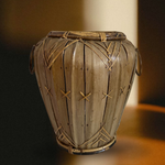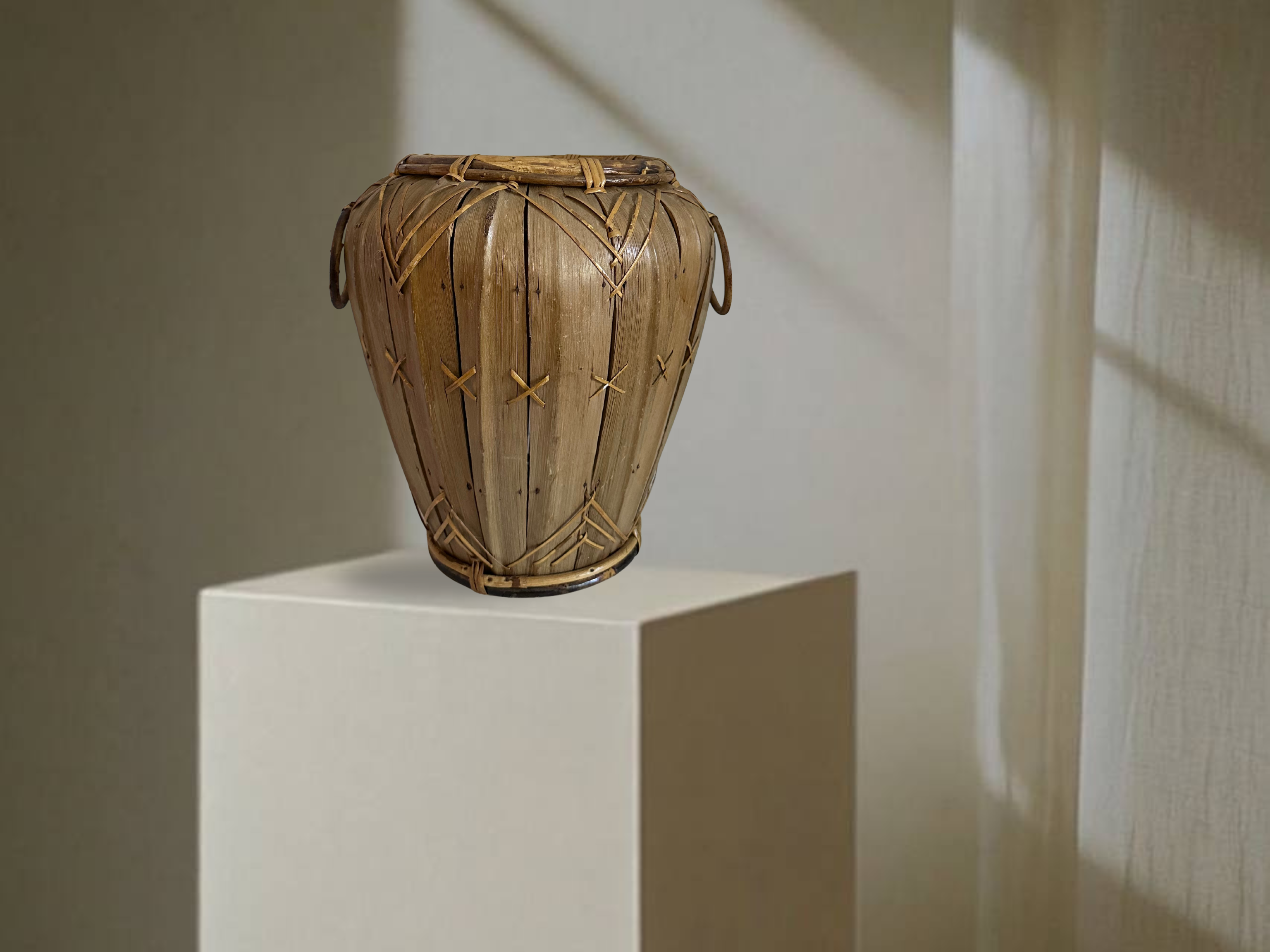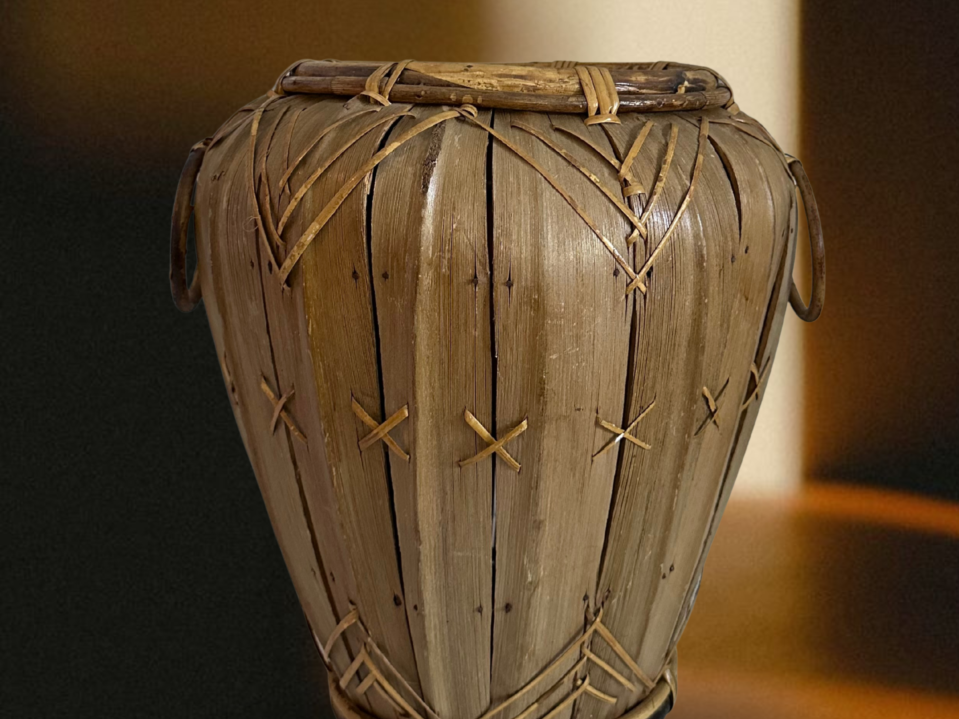 Vintage XL Bamboo & Palm Leaf Vase with Handles