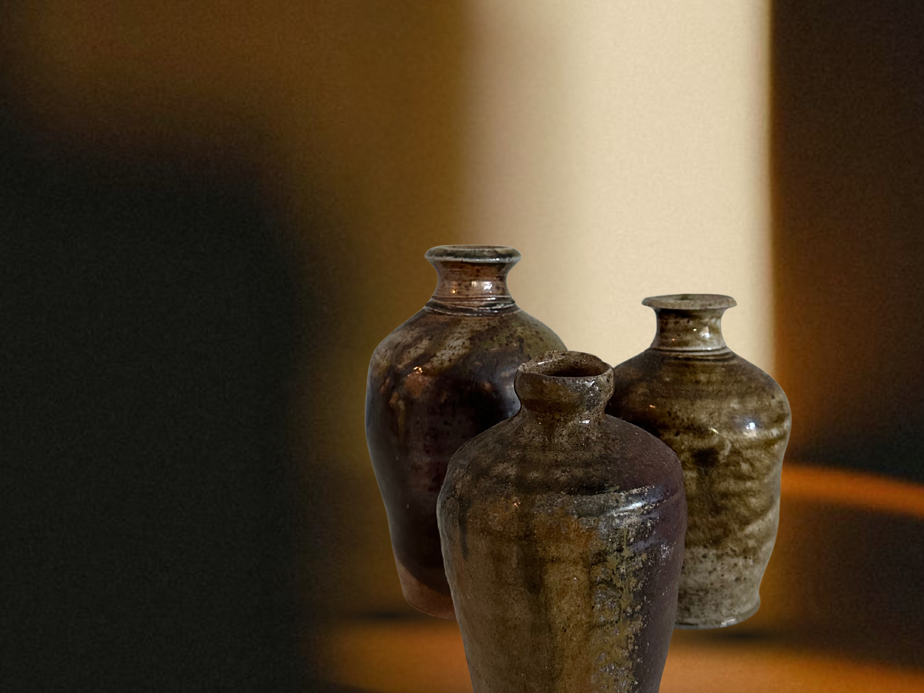 - Vintage Organic Shaped Thai Water Glazed Pottery Jars (Set of 3)